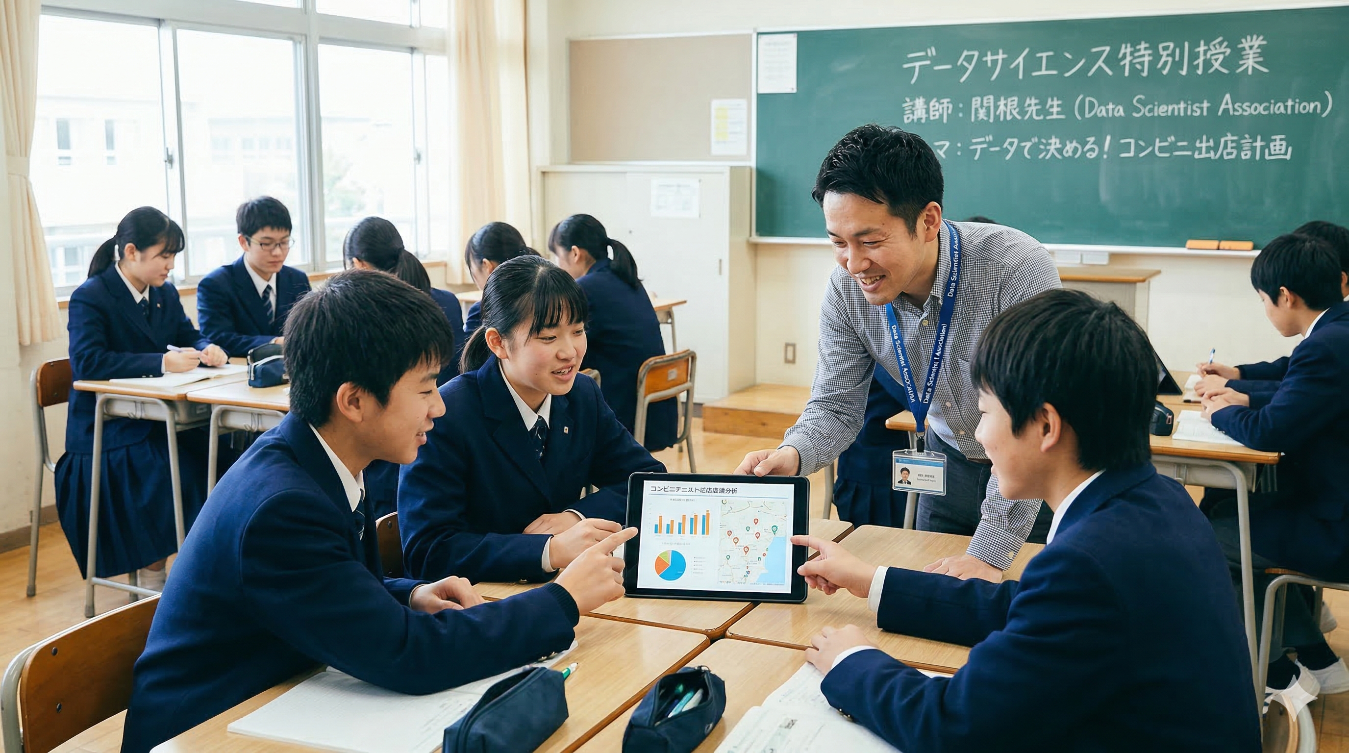 ネイチャーインサイト株式会社(本社:東京都千代田区、代表取締役:大宮 洋一)のシニアデータサイエンティスト 関根伸吾が、2026年3月18日、一般社団法人データサイエンティスト協会の活動の一環として、埼玉県春日部市立葛飾中学校にて2年生を対象としたデータサイエンスの特別授業に登壇いたしました。