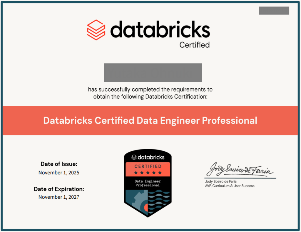先日、Databricks Certified Data Engineer Professional を受験し、合格しました。